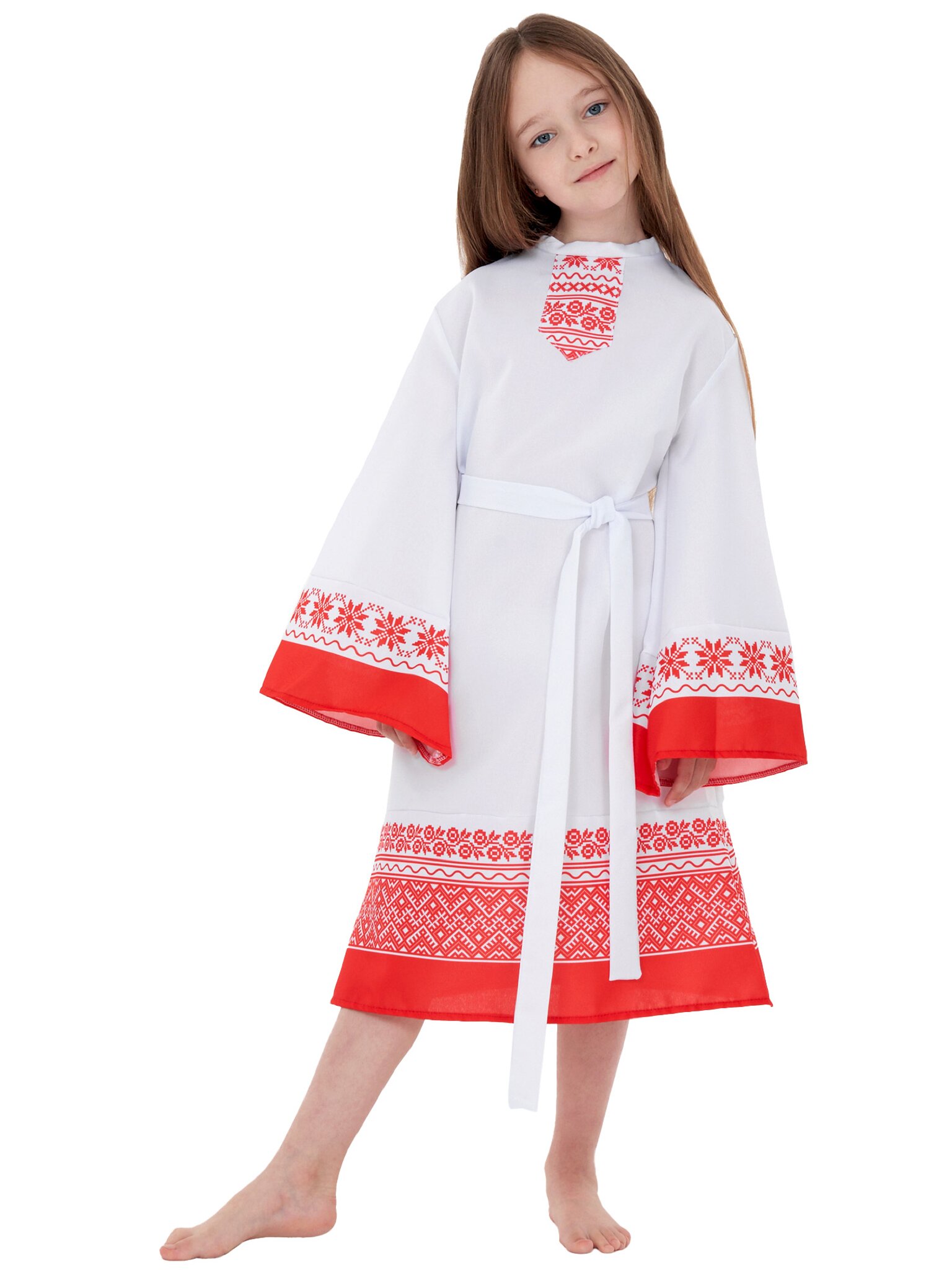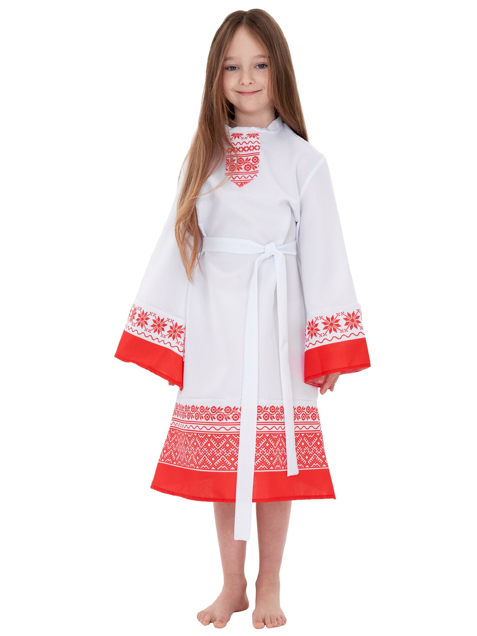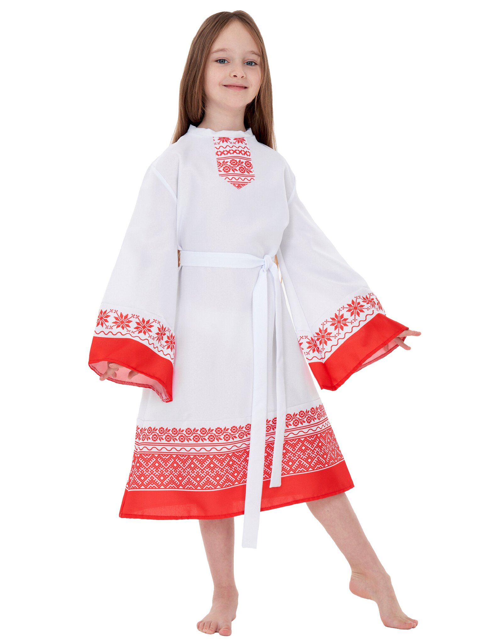 Русское народное покосное платье для девочки выполнено из габардина. Идеально подходит для тематической вечеринки, праздников весны и лета, а также Масленицы.